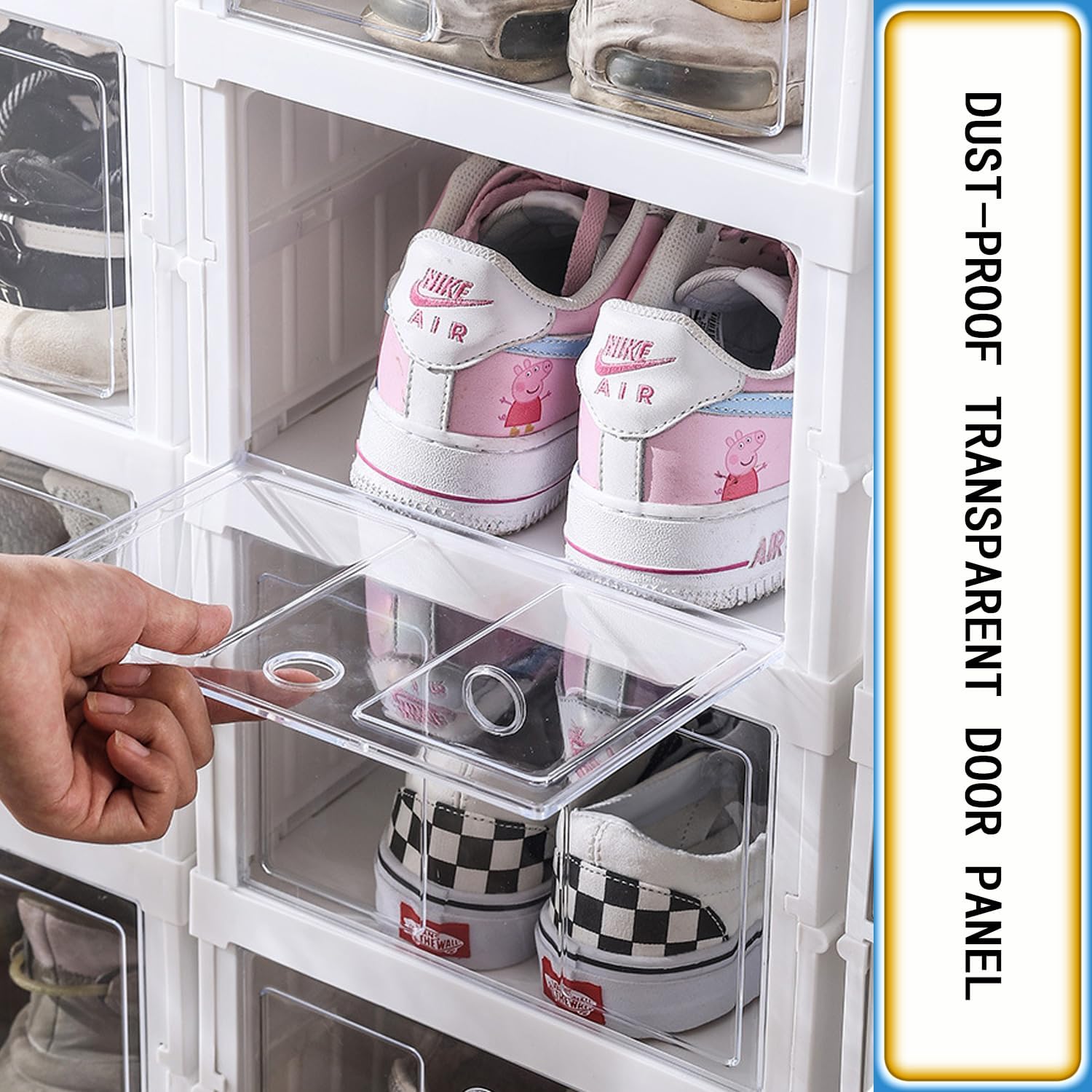 الباب الشفاف يوريك الأحذية كلها من غير ما تفتح، وتقدري توصلي للزوج المطلوب بسرعة.
