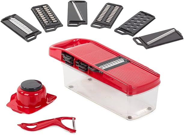 ✅ 6 شفرات متعددة الاستخدامات لتقطيع الخضار، بشر الجبنة، تقطيع البطاطس، وتقطيع الفواكه بكل سهولة!